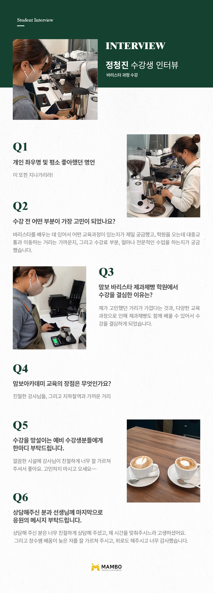 제1조 (개인정보 수집에 대한 동의)맘보교육그룹(이하 회사)는 이용자들이 회사의 개인정보취급방침 또는 이용약관의 내용에 대하여 “동의”버튼 또는 “취소”버튼을 클릭할 수 있는 절차를 마련하여, “동의”버튼을 클릭하면 개인정보 수집에 대해 동의한 것으로 봅니다. 제2조 (개인정보 수집항목) 온라인 문의를 통한 상담을 위해 처리하는 개인정보 항목은 아래와 같습니다. 수집항목 : 성명, 이메일, 전화번호 제3조 (개인정보의 이용목적) 회사는 이용자의 사전 동의 없이는 이용자의 개인 정보를 공개하지 않으며, 원활한 고객상담, 각종 서비스의 제공을 위해 아래와 같이 개인정보를 수집하고 있습니다. 모든 정보는 상기 목적에 필요한 용도 이외로는 사용되지 않으며 수집 정보의 범위나 사용 목적, 용도가 변경될 시에는 반드시 사전 동의를 구할 것입니다. - 성명 : 제품상담에 따른 본인 확인 - 이메일, 전화번호 : 제품상담 및 이벤트 관련 고지사항 전달, 새로운 서비스 및 신상품 정보 제공(DM, SMS, 이메일 등 이용) 이용자는 개인정보의 수집/이용에 대한 동의를 거부할 수 있습니다. 다만, 동의를 거부하는 경우 온라인 문의를 통한 상담은 불가하며 서비스 이용 및 혜택 제공에 제한을 받을 수 있습니다. 제4조 (개인정보의 보유 및 이용기간) 원칙적으로 개인정보 수집 및 이용목적이 달성된 후에는 해당 정보를 지체 없이 파기합니다. 그리고 상법, 전자상거래 등에서의 소비자보호에 관한 법률 등 관계법렵의 규정에 의하여 보존할 필요가 있는 경우 회사는 관계법령에서 정한 일정한 기간 동안 정보를 보관합니다. 이 경우 회사는 보관하는 정보를 그 보관의 목적으로만 이용하며 보존기간은 아래와 같습니다. - 계약 또는 청약철회 등에 관한 기록 : 5년(전자상거래등에서의 소비자보호에 관한 법률) - 소비자의 불만 또는 분쟁처리에 관한 기록 : 3년(전자상거래등에서의 소비자 보호에 관한 법률) - 시용정보의 수집/처리 및 이용 등에 관한 기록 : 3년(신용정보의 이용 및 보호에 관한 법률) - 회사는 귀중한 이용자의 개인정보를 안전하게 처리하며, 유출의 방지를 위하여 다음과 같은 방법을 통하여 개인정보를 파기합니다. - 종이에 출력된 개인정보는 분쇄기로 분쇄하거나 소각을 통하여 파기합니다. - 전자적 파일 형태로 저장된 개인정보는 기록을 재생할 수 없는 기술적 방법을 사용하여 삭제합니다.